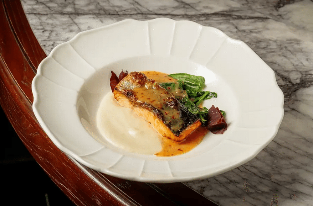 Лосось со шпинатом и соусом понзу