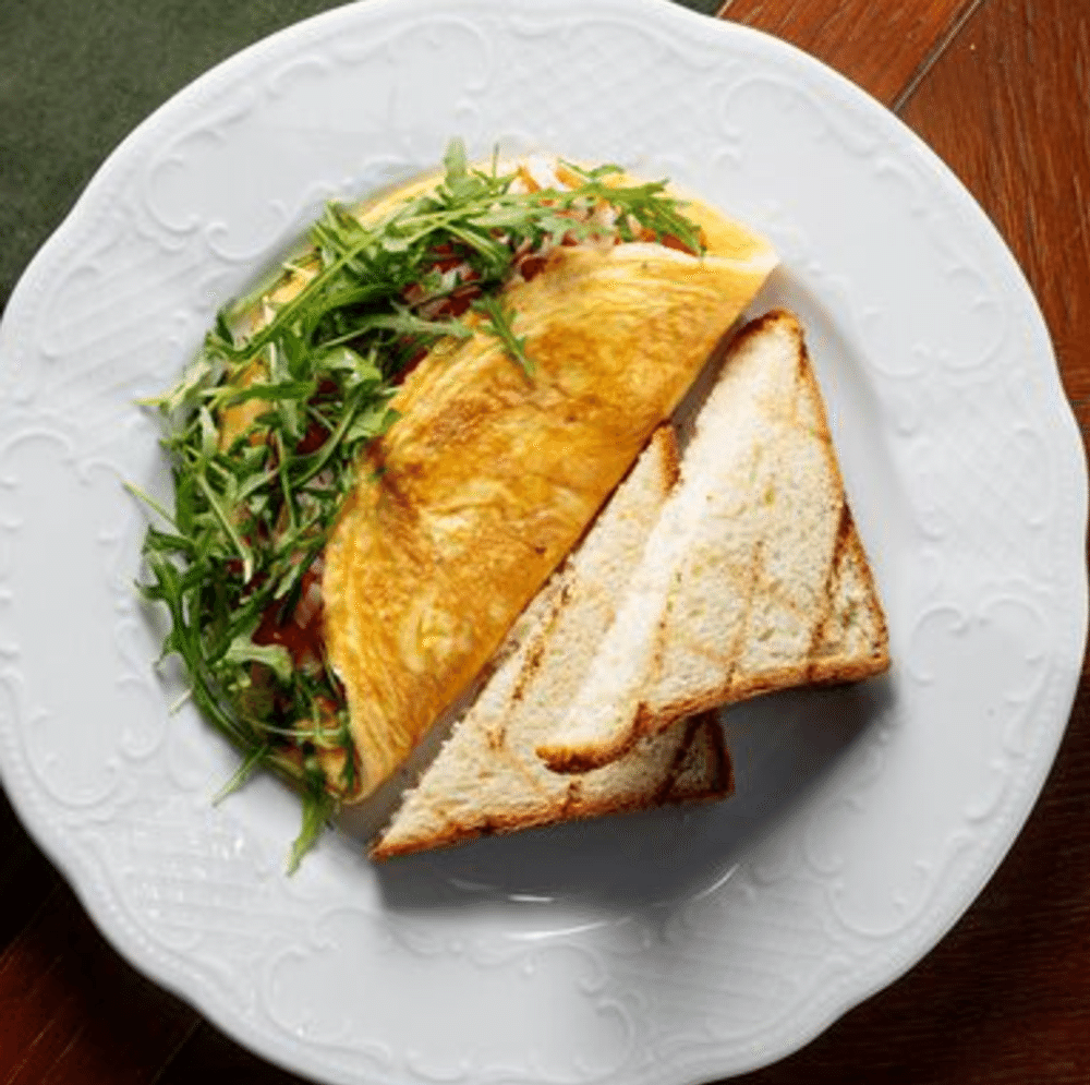 Классический завтрак из яиц с добавлением томатов и сыра моцарелла.