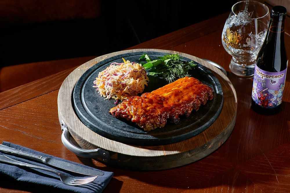Ребра маринуются в медово-горчичном соусе, готовятся методом су-вид. Перед подачей смазываются соусом медово-горчичным соусом и доводятся до готовности в коптильне. Подаются с початком кукурузы гриль