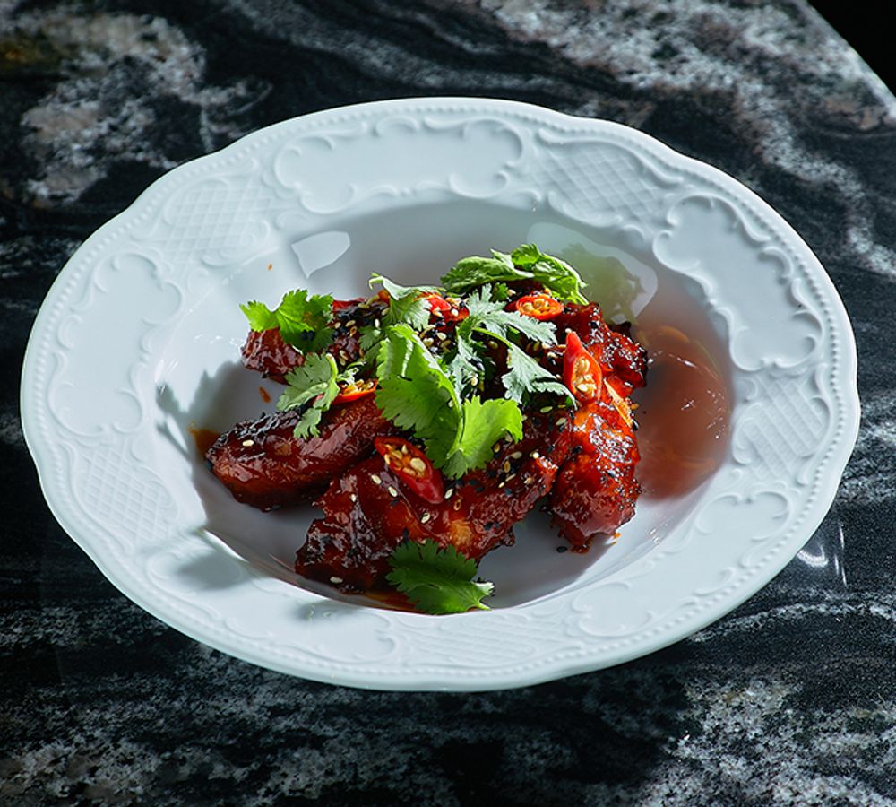 Куриные крылья, предварительно замаринованные, а затем обжаренные в кисло-сладком соусе