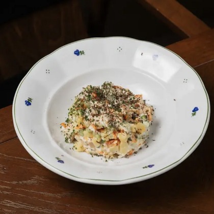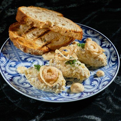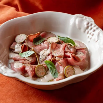 Свежая рубленая говядина, приправленная оливковым маслом, мёдом и зернистой горчицей с добавлением красным маринованного лука. Посыпается сыром пармезан и выкладывается на крем из анчоусов. Подаётся с ломтиками хлеба тартин, обжаренным с чесночным маслом.